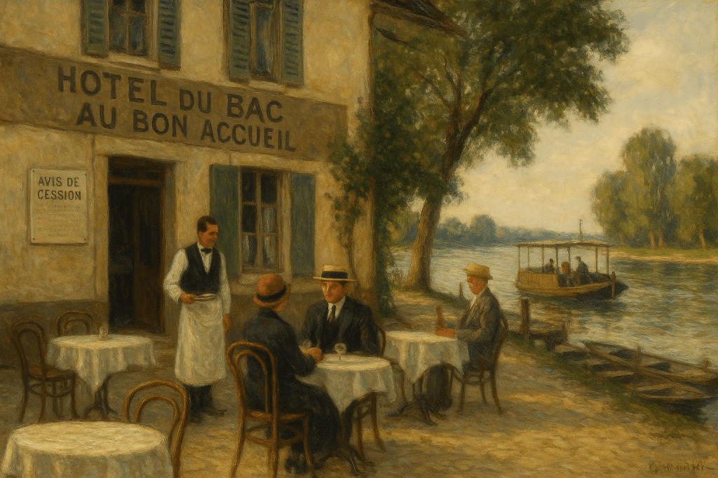Monsieur Jean Rousseau ne garda pas l’hôtel-restaurant « Au rendez-vous des canotiers » et le revendit aussitôt à Raymond Joseph Grandpierron. L’hôtel-restaurant change de nom et s’appelle l’auberge « Au Bon Accueil » – Maison Raymond.