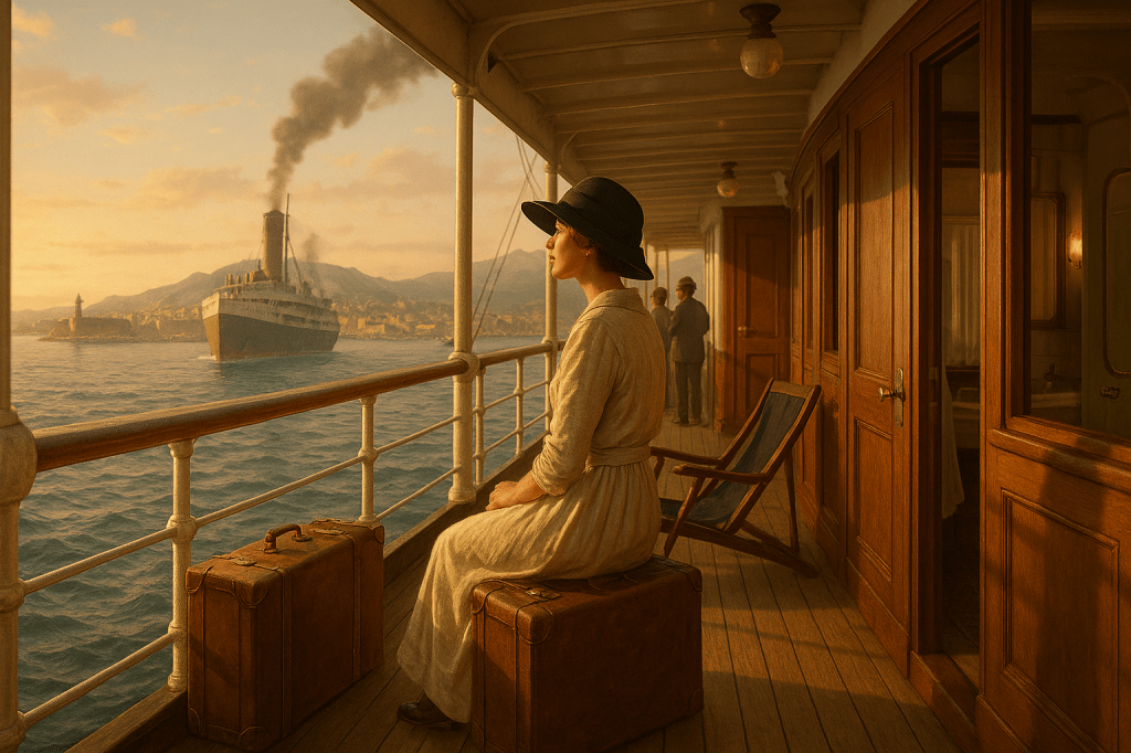Après le départ de Marseille en fin d’après-midi et l’installation dans la cabine, je me suis familiarisée avec les installations notamment, les salles de bain réservées aux femmes et ai fait la connaissance de la personne avec laquelle je partage la cabine.