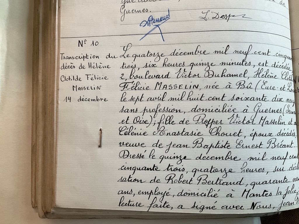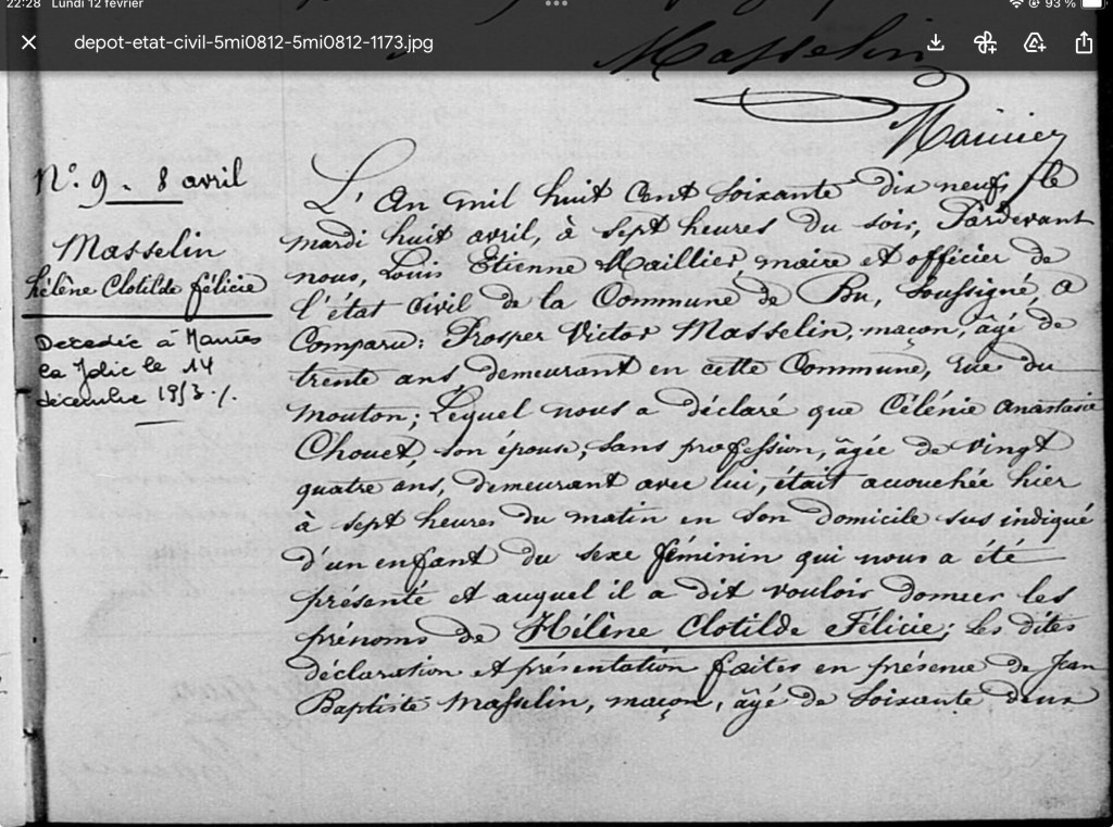Acte d’état civil Hélène Masselin