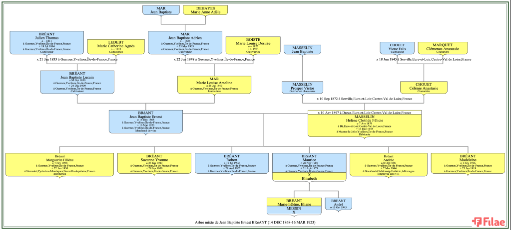 Arbre Généalogique Bréant Ernest, Jean Baptiste et Masselin Hélène Clotilde Félicie